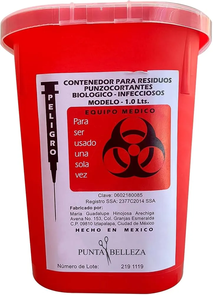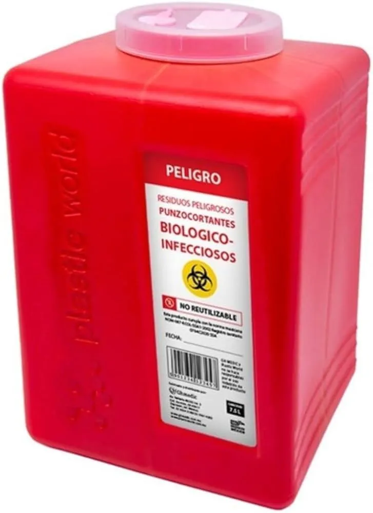 BOTE ROJO RECOLECTOR DE PUNZOCORTANTE RPBI 7.5 LT PLASTIC WORLD