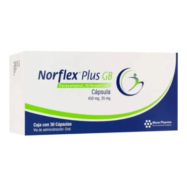 NORFLEX PLUS GB 450mg/35mg PARACETAMOL, ORFENADRINA CAJA CON 30 CÁPSULAS