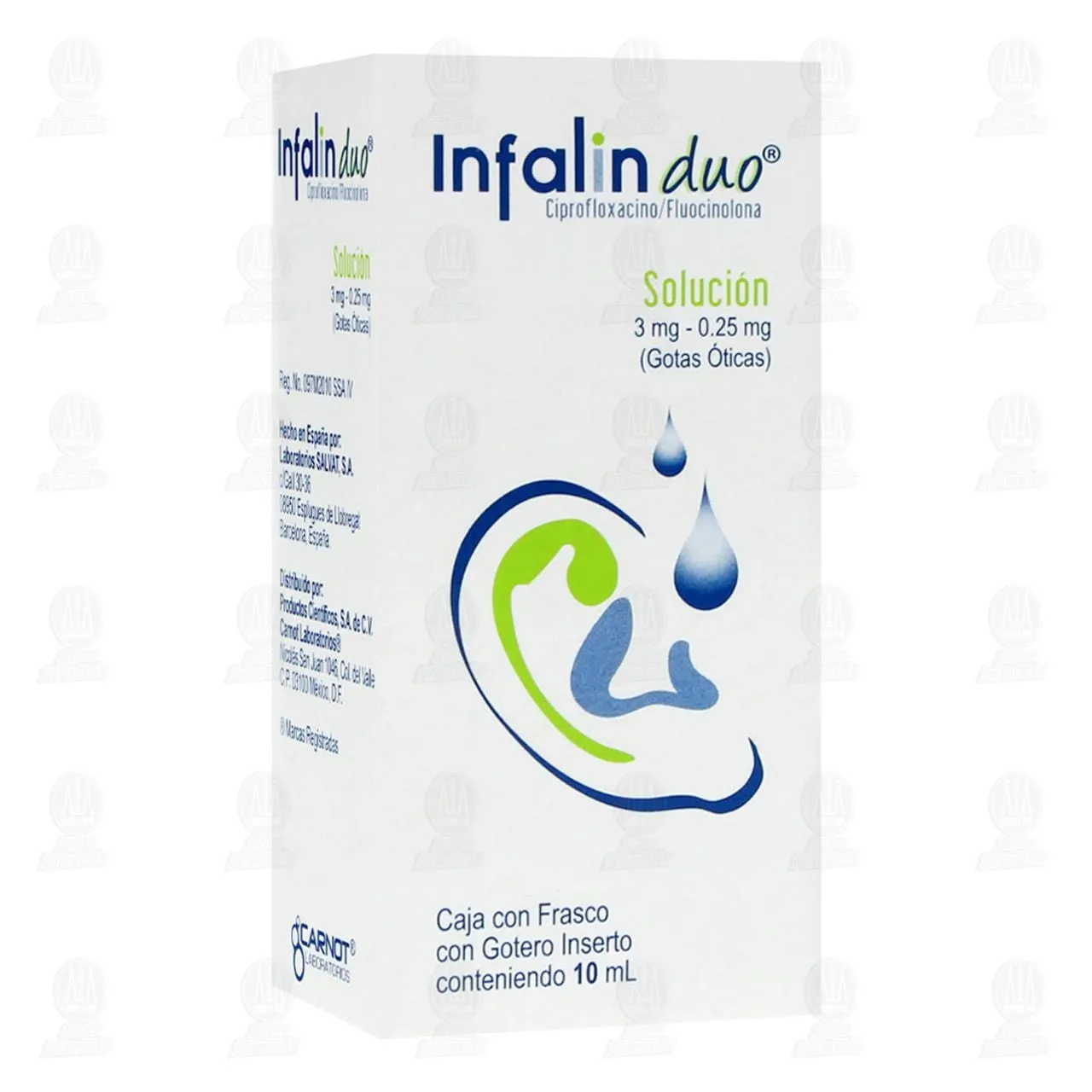 INFALIN DUO CIPROFLOXACINO/FLUOCINOLONA SOLUCION 3MG-0.25MG GOTAS OTICAS FRASCO 10ML