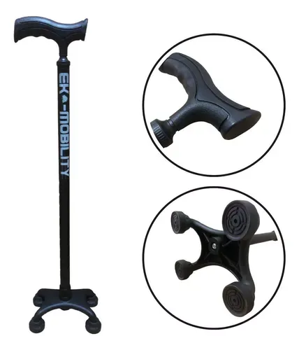 BASTON 4 APOYOS BASE PLÁSTICA AJUSTABLE NEGRO EKO MOBILITY