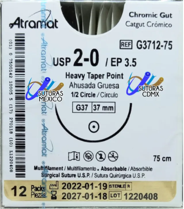 CATGUT CRÓMICO 2-0 37MM Atramat