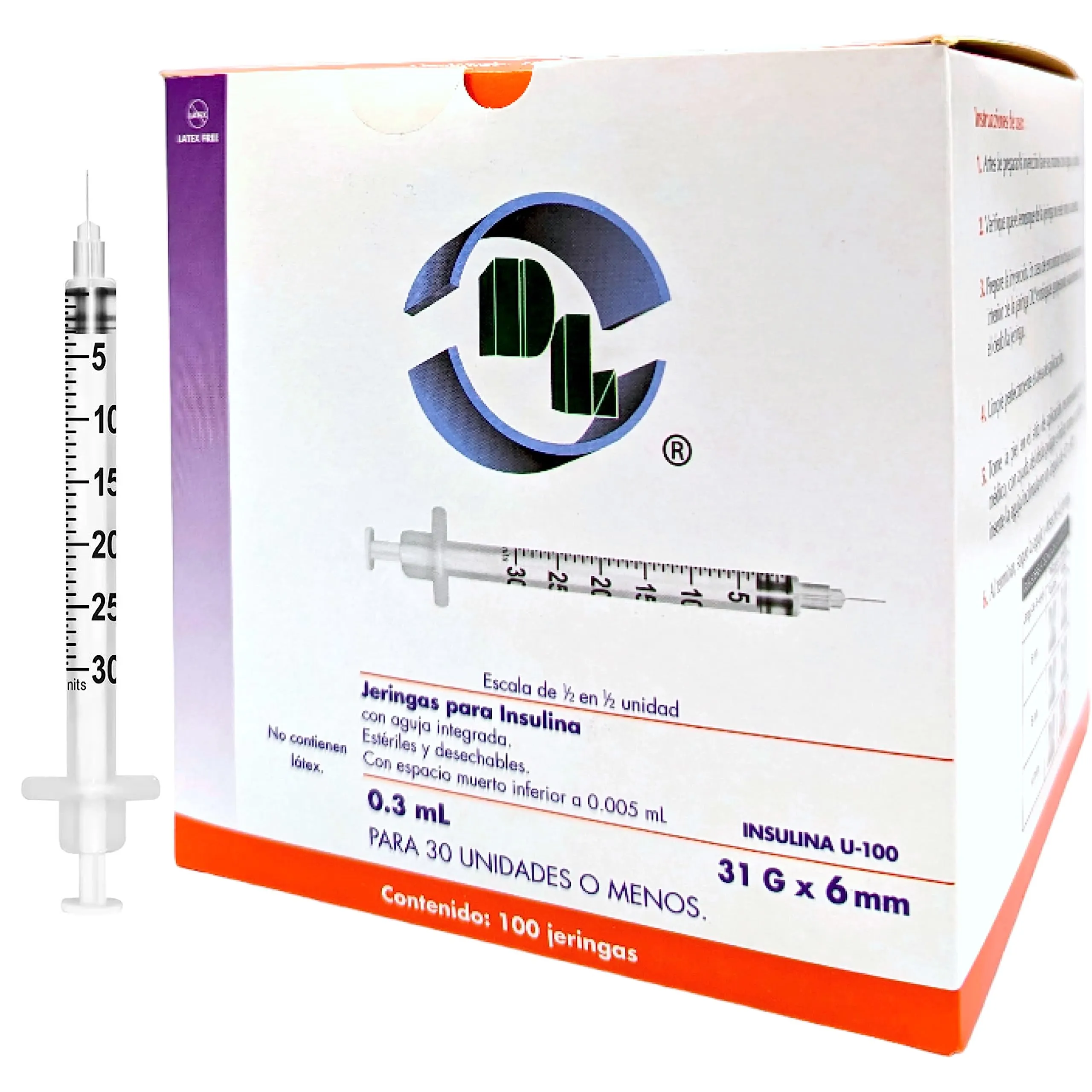 JERINGA PARA INSULINA 0.3ML 31GX6MM CON 10 PIEZAS DL