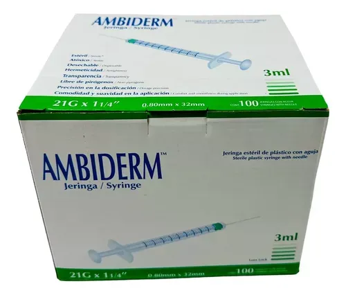 JERINGA ESTÉRIL 3ML 21G X 1 1/14" VERDE AMBIDERM