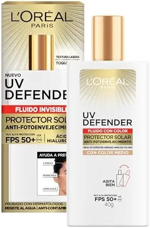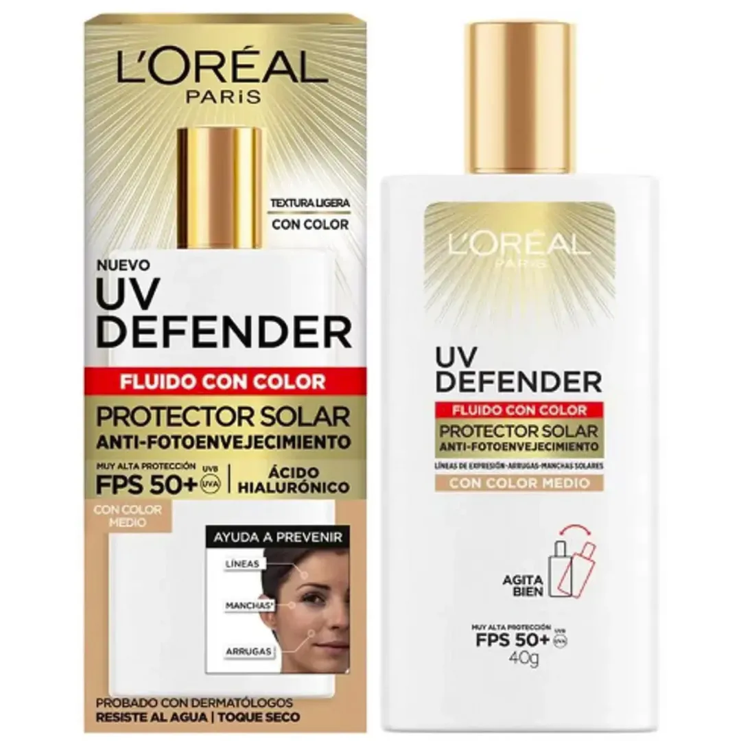 LOREAL UV DEFENDER PROTECTOR SOLAR FPS 50+ CON COLOR MEDIO 40G