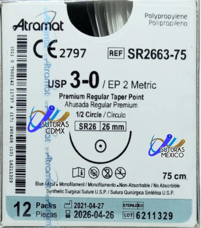 POLIPROPILENO 3-0 1/2C 26MM AHUSADA ATRAMAT