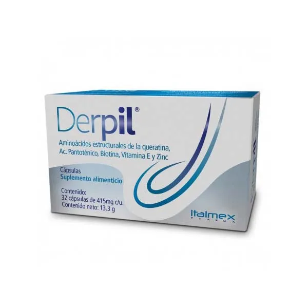 DERPIL C/32 CAP AMINOACIDOS ESTRUCTURALES DE LA QUERATINA, ACIDO PANTOTENICO, VITAMINA E Y ZINC